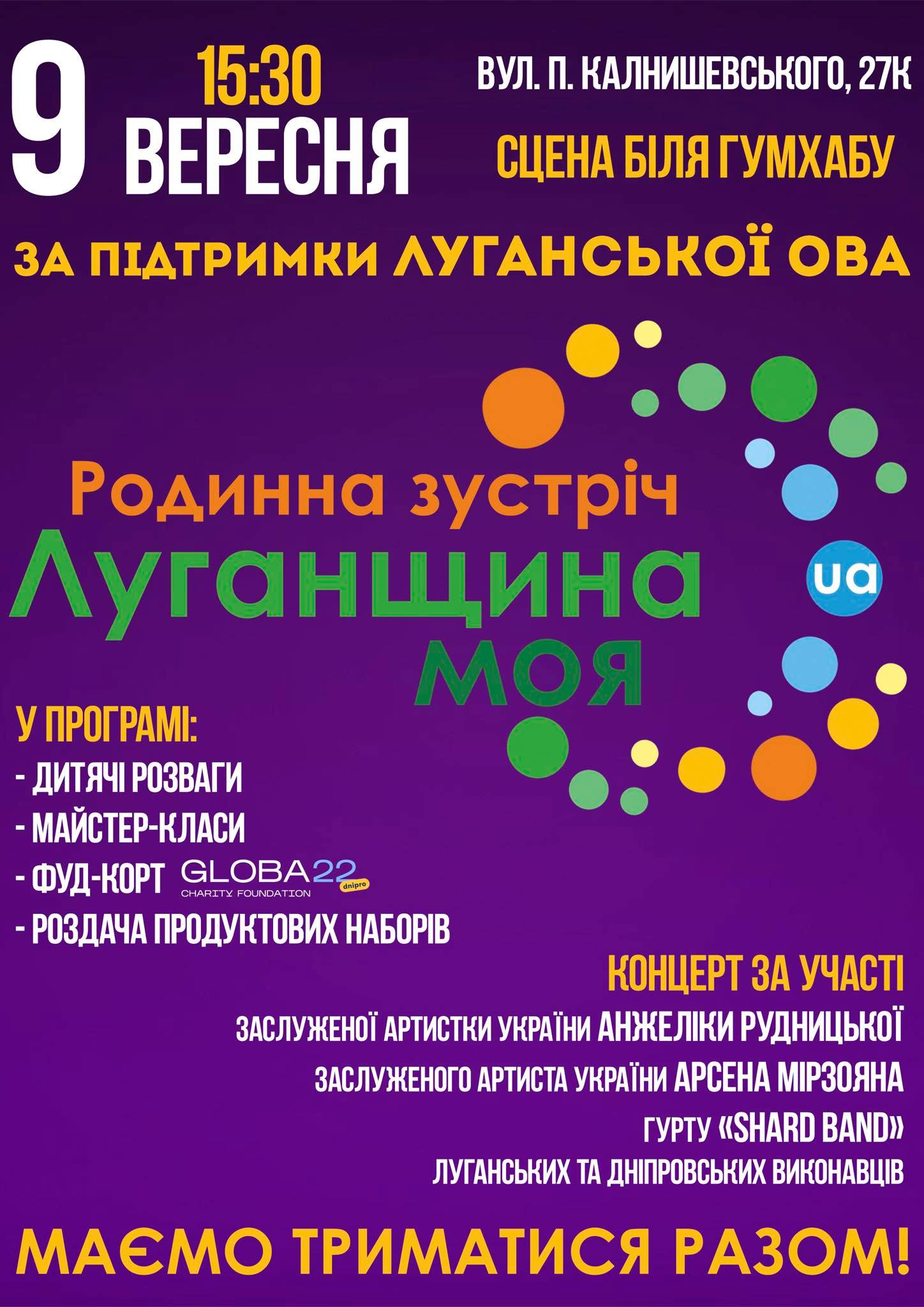 В пятницу, 9 сентября, в Днепре при поддержке Луганской ОВА будет организована встреча для жителей региона "Луганщина моя".