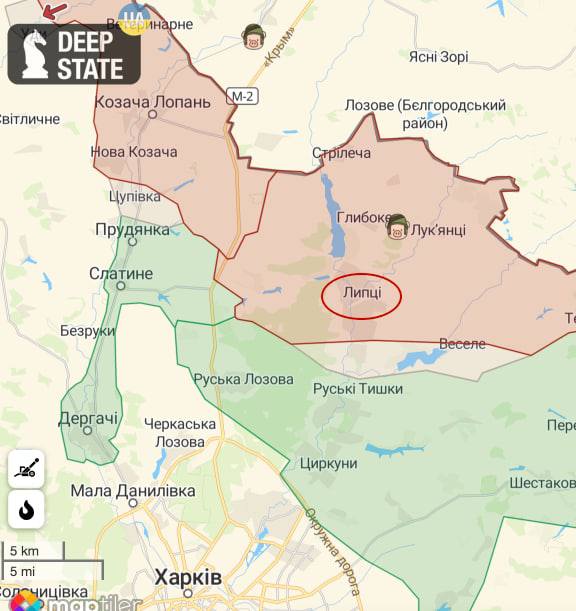 "ВСУ уже в селе Липцы на севере Харьковской области. Это в 13 километрах от российской границы", - подпись к фото.