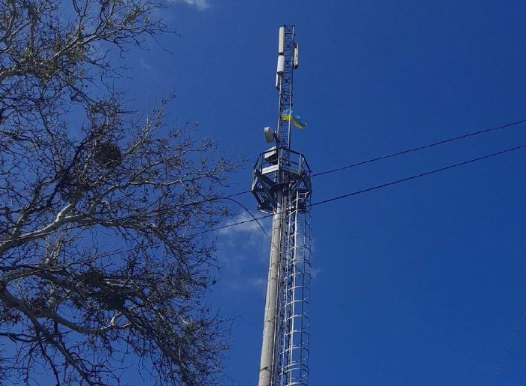 В сети появилось фото, как на вышке мобильной связи в Яровой развивается украинский флаг.