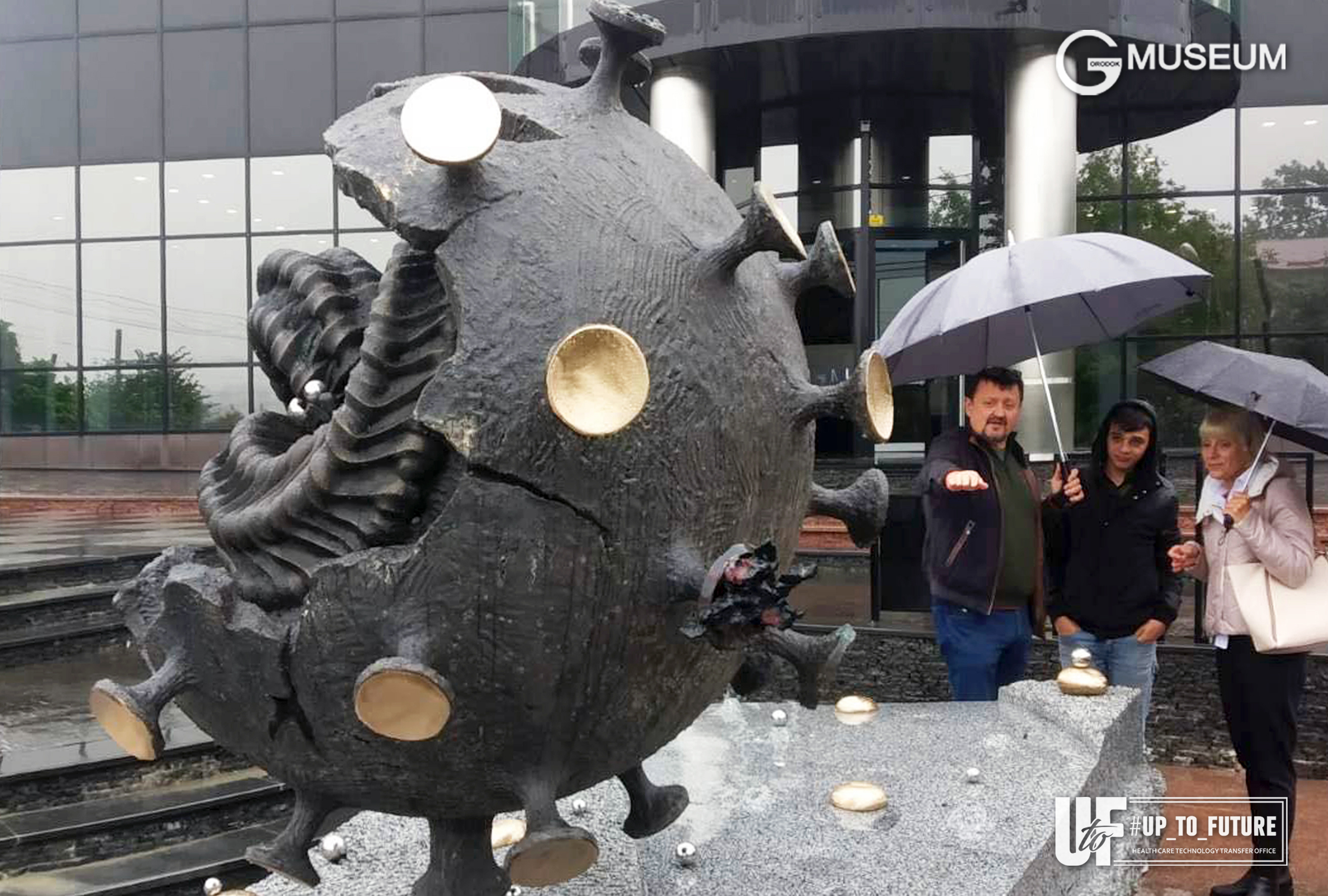 В городе Городок Хмельницкой области открыли памятник в виде молекулы COVID-19. Его посвятили врачам, которые спасли тысячи украинцев во время пандемии.