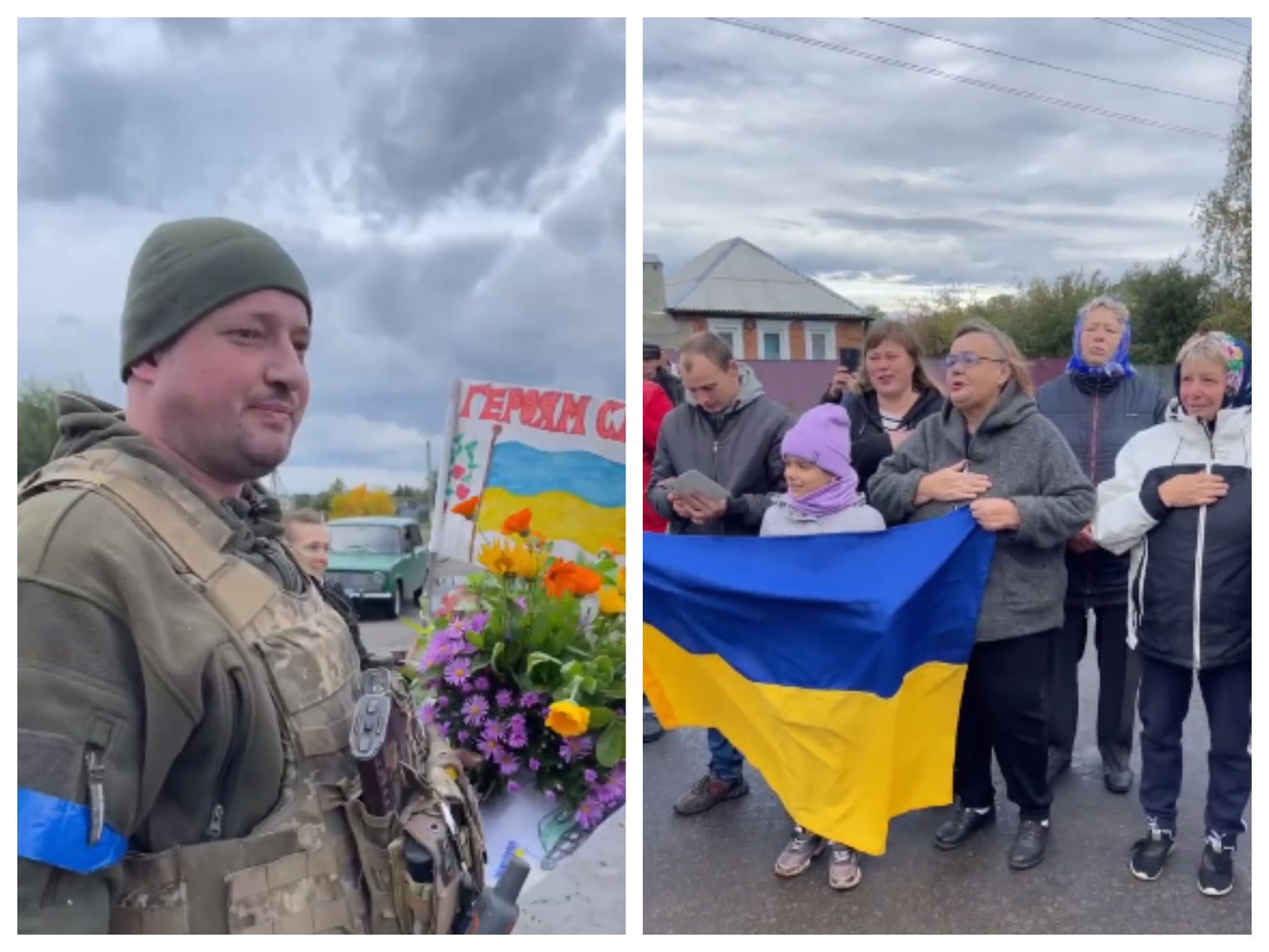 Местные жители встречали защитников цветами, флагами и гимном Украины.