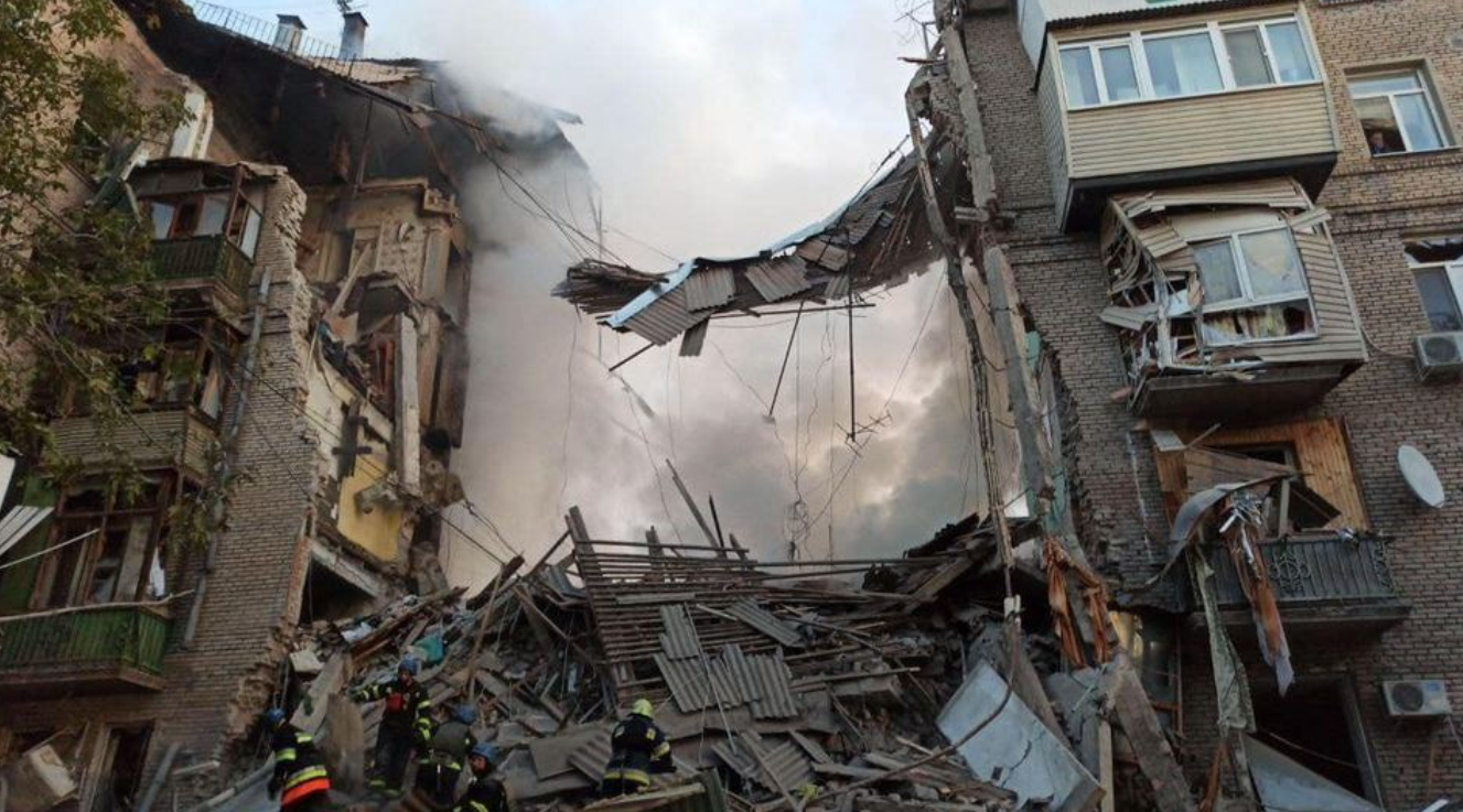 В результате ракетного удара по Запорожью разрушены жилые дома. Количество пострадавших растет. Под завалами остаются люди. По предварительным данным, погибли два человека.