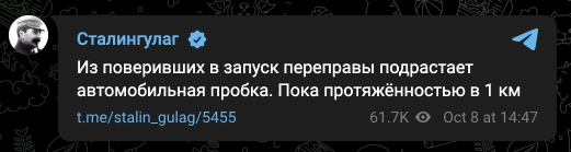 В частности, начала распространяться информация о том, что вместо моста, проезд по которому на данный момент невозможен, будет организована переправа. Некоторые люди в это действительно поверили и начала уже выстраиваться в очередь. Однако, судя по всему, делать переправу (во всяком случае - оперативно) никто не собирается.