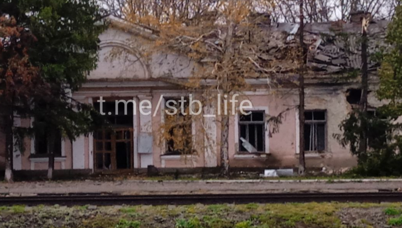 "Прилетело" в железнодорожный вокзал. Утром оккупационные власти поспешили заявить, что на здание якобы упали обломки сбитой ПВО ракеты.