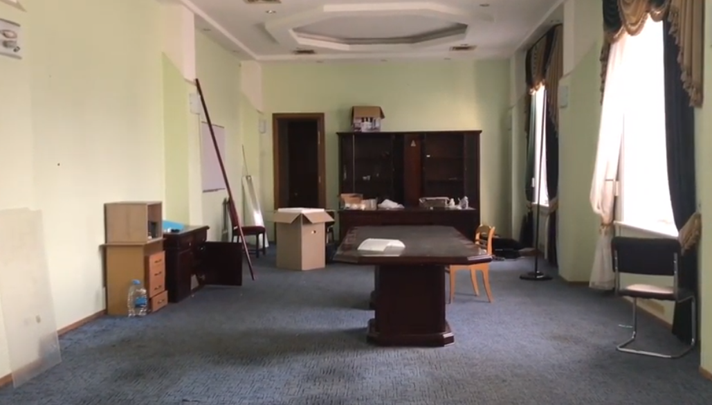 "Вот так выглядит кабинет губернатора. Украли все, что можно", - говорит автор видео.