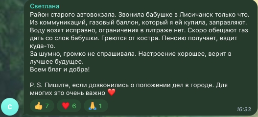 По словам пользователей сети, которые выходили на связь с местными жителями, ни газа, ни отопления в Лисичанске нет. На дворе средина ноября, а люди греются от костра. Повезло тем, кого родственники смогли снабдить газовыми баллонами.