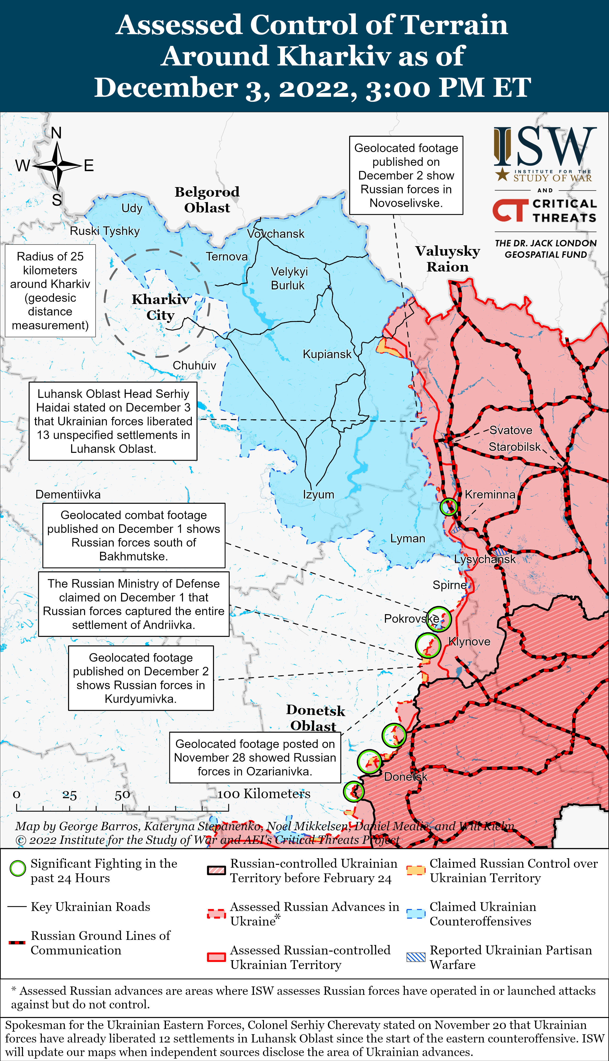 Также в росСМИ отметили, что ВСУ достигли Червонопоповки (6 км к северу от Кременной) и что российские силы больше не контролируют часть трассы Р-66 к северу от Кременной.