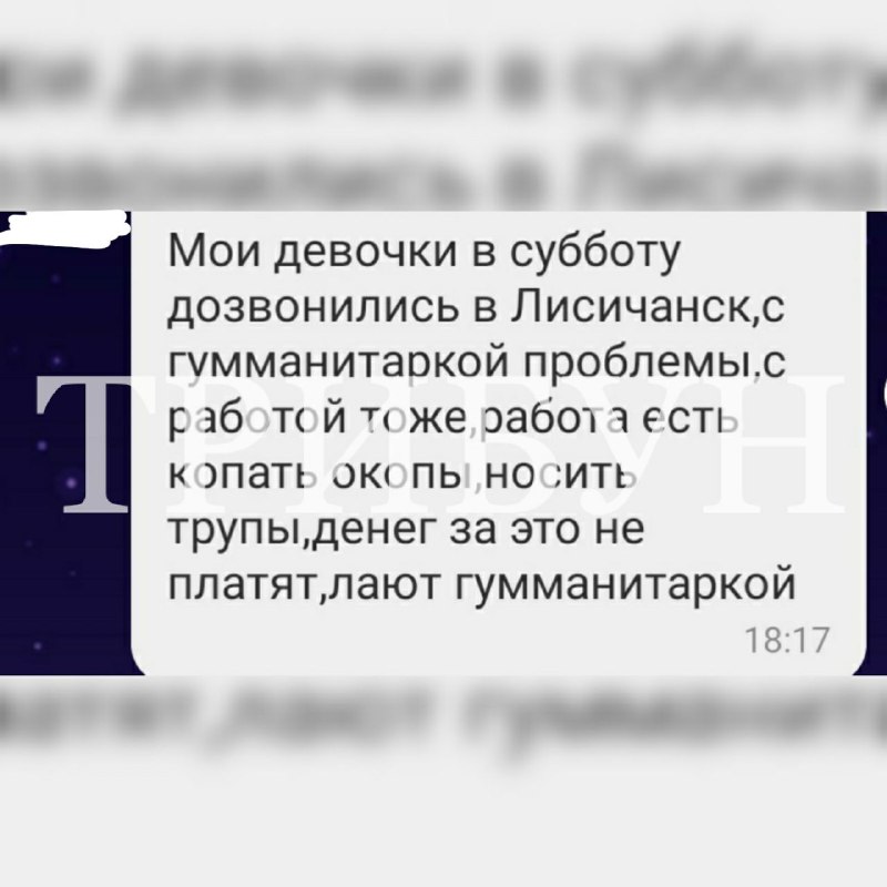 "В городе с гумаритарной помощью проблемы, с работой тоже. Она (работа) есть - копать окопы и носить трупы, но денег за нее не платят, дают гуманитаркой", - сообщают в сети.