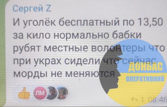 "Ага, на рынке снова появятся пушки по 3000 рублей. И бесплатный уголь по 13,5 за кило. Нормальные бабки рубят местные волонтеры", - пишут жители Лисичанска.