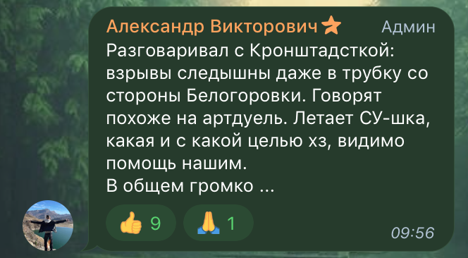 Вместе с тем, пользователи сети, которым удалось выйти на связь с РТИ, сообщают, что звуки взрывов отдаленные - слышны "средне".