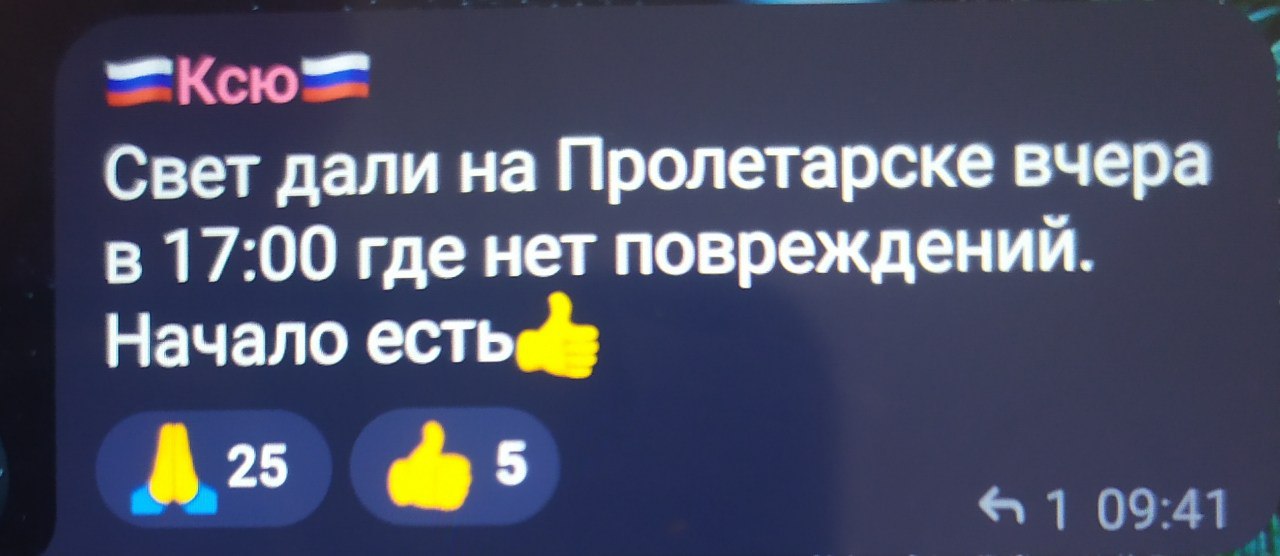 "Скорый сказал, что к весне следующего года дадут свет на 20%", - пишут в местных пабликах.