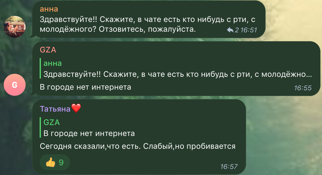 Однако в региональных чатах в Telegram появилась информаци о робких намеках на интернет в городе, передает Час Пик.
