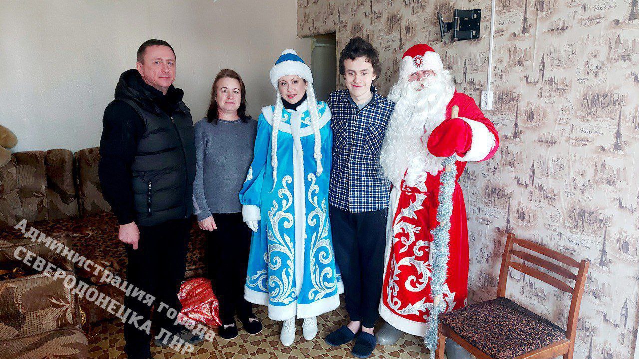"Вместе с Дедом Морозом и Снегурочкой посетил две семьи переселенцев из Сватово и Красного Лимана. Несмотря на не самые простые условия жизни в Северодонецке, который только восстанавливается после месяцев разрушений, в нашем городе тоже нашлось место для переселенцев", - написал он.