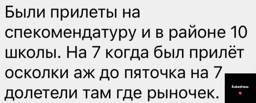 "Были прилеты и на спецкомендатуру и районе 10 школы", - пишут очевидцы.
