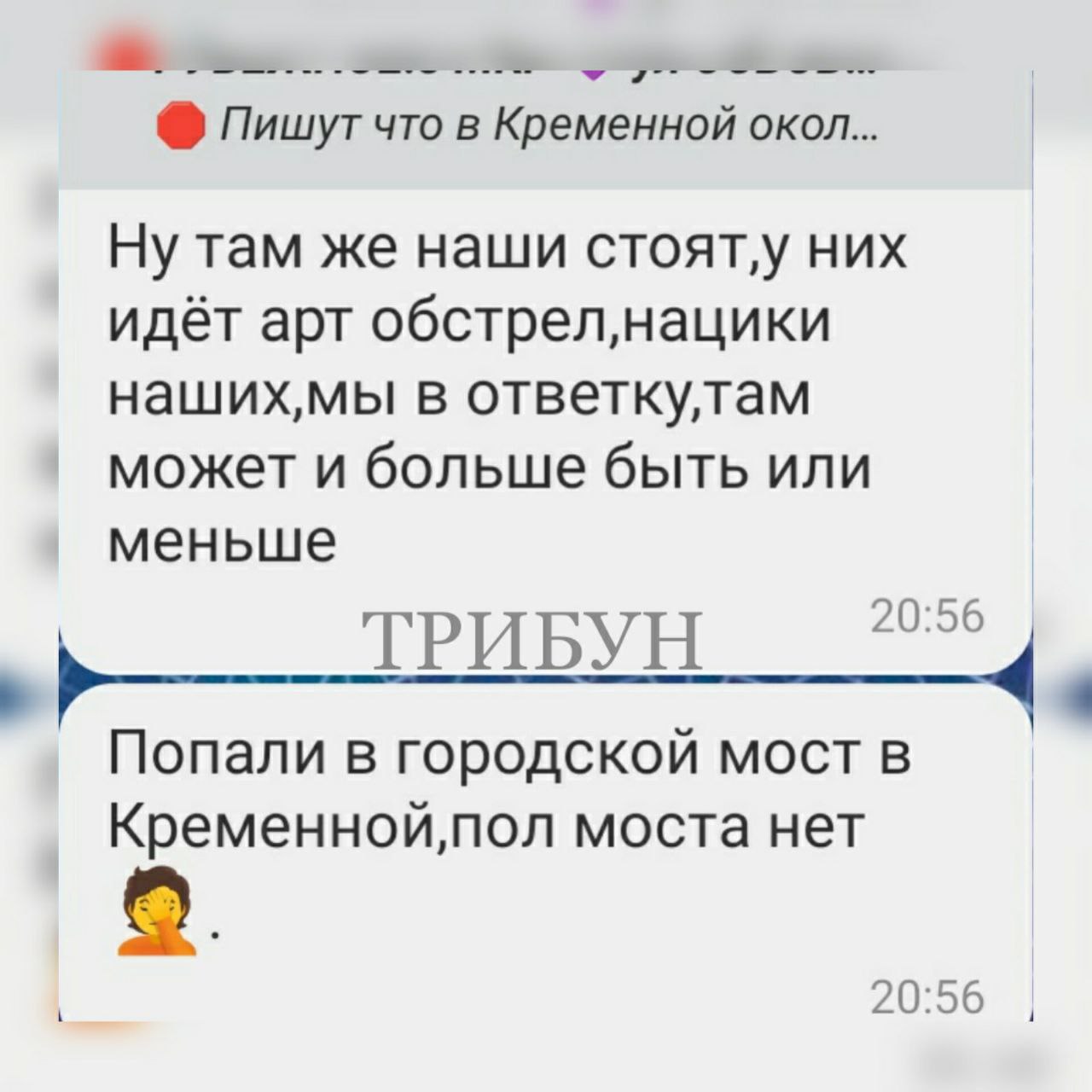 На кадрах - стадион "Олимп" в Кременной. Как можно заметить, по стадиону "прилетало". На видео слышны залпы. На втором видео показан мост. По словам оккупантов, было попадание по мосту.