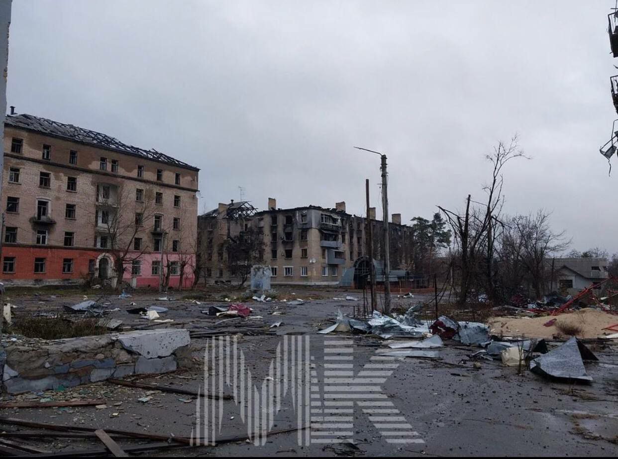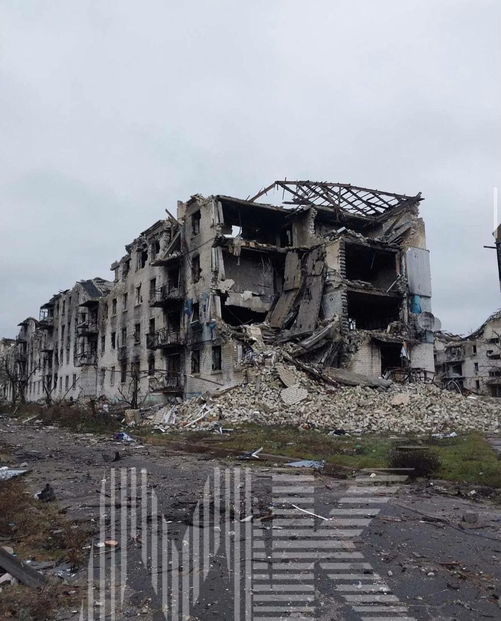 На кадрах - южная часть города. Как можно заметить, большая часть зданий серьезно повреждена. Вероятно, многие дома не подлежат восстановлению, так как от них остались только руины.