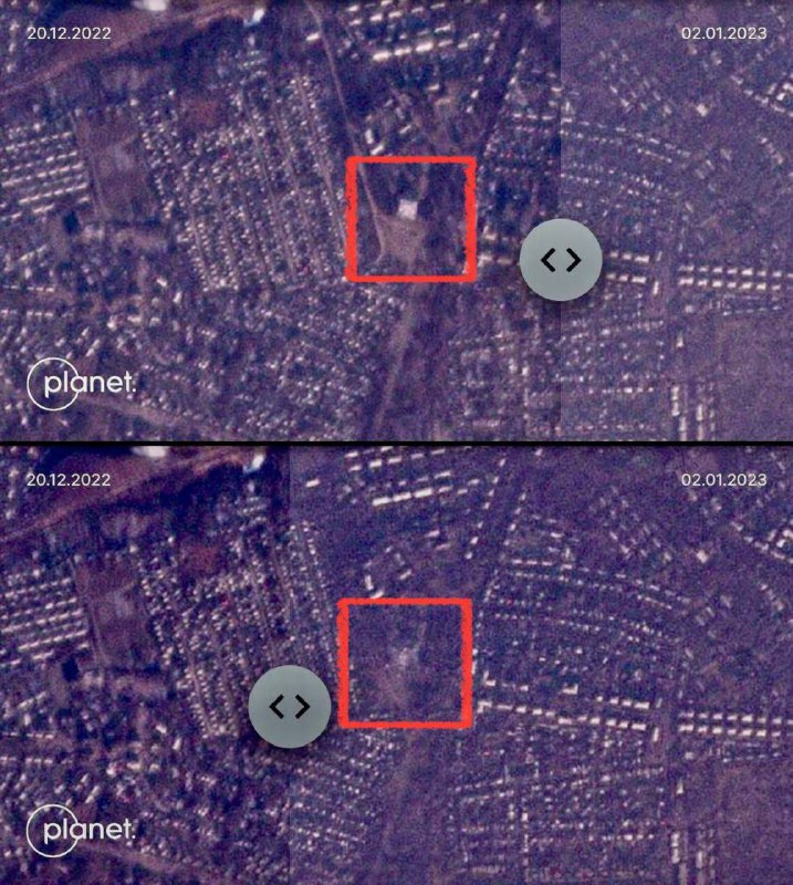 В сети показали снимки ПТУ в Макеевке Донецкой области со спутника компании "Planet Labs". Фото сделано до, и после удара по нему.