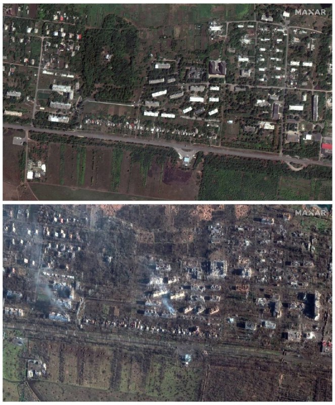 Maxar опубликовала спутниковые снимки Бахмута - ситуация в городе до 1 августа 2022 года и после 4 января 2023 года, передает Час Пик.
