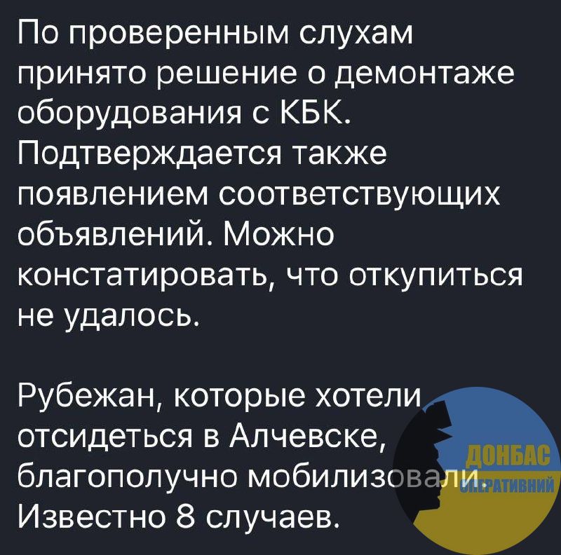 Также сообщают, что рубежан, которые хотели отсидеться в Алчевске, благополучно мобилизовали. "Известно 8 случаев".