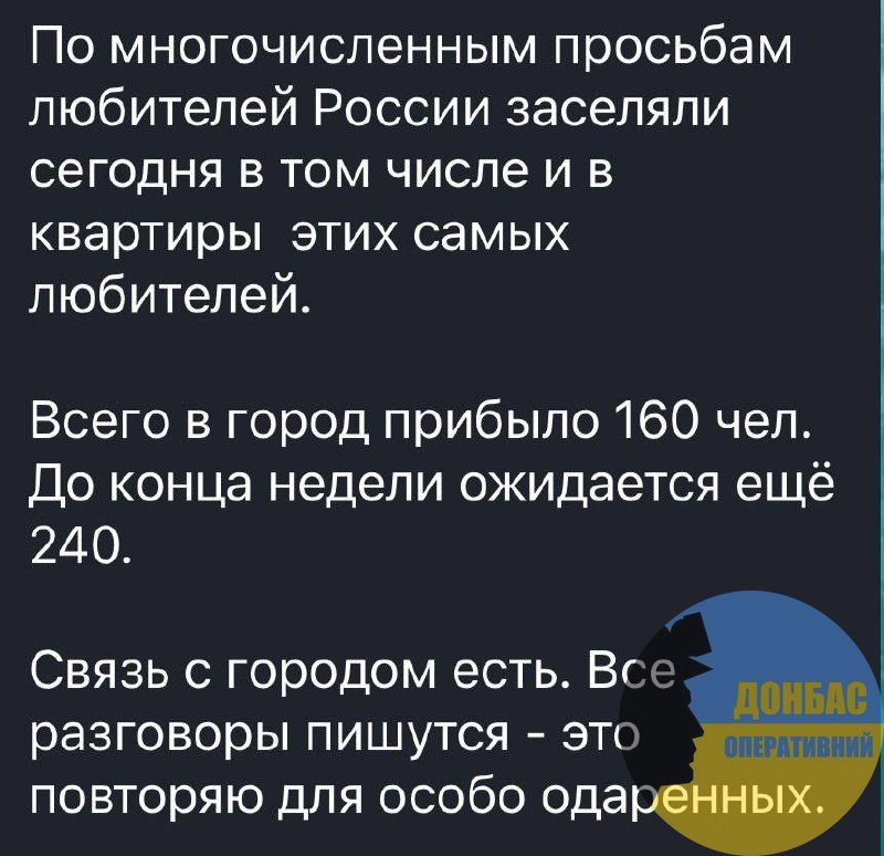 "В город прибыло 160 мобиков. До конца недели ожидается еще 240", - сообщают очевидцы.