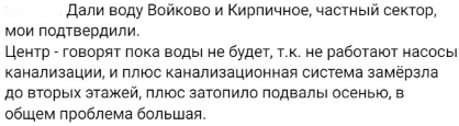 Напомним, ранее сообщалось о пробных пусках воды в некоторых районах города, однако в центре Лисичанска воды не будет, т.к. "не работают канализационные насосы". По крайней мере, так поясняет ситуацию оккупационная "власть".
