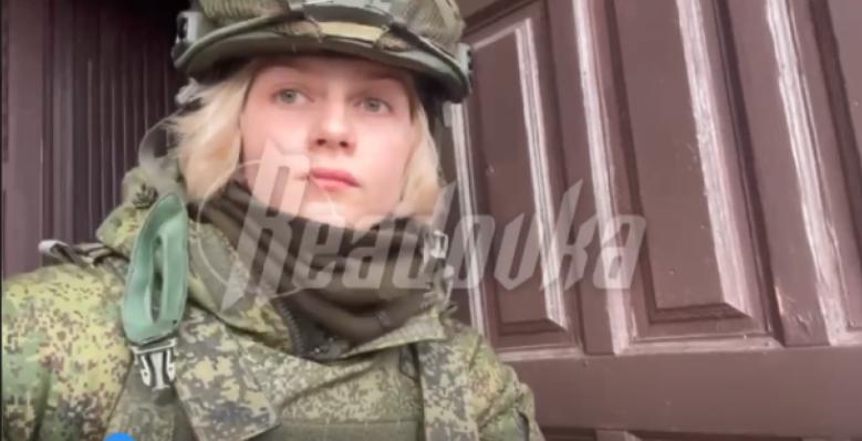 На кадрах Анастасия Елсукова, пропагандистка с канала "Ридовка", которая в прямом эфире получила пулю в ногу.