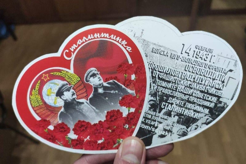 "Фото из оккупации. Луганск. Вчера на улицах в честь Дня влюбленных раздавали такие вот "Сталинки". Ужас", - подписал фото Tg-канал.