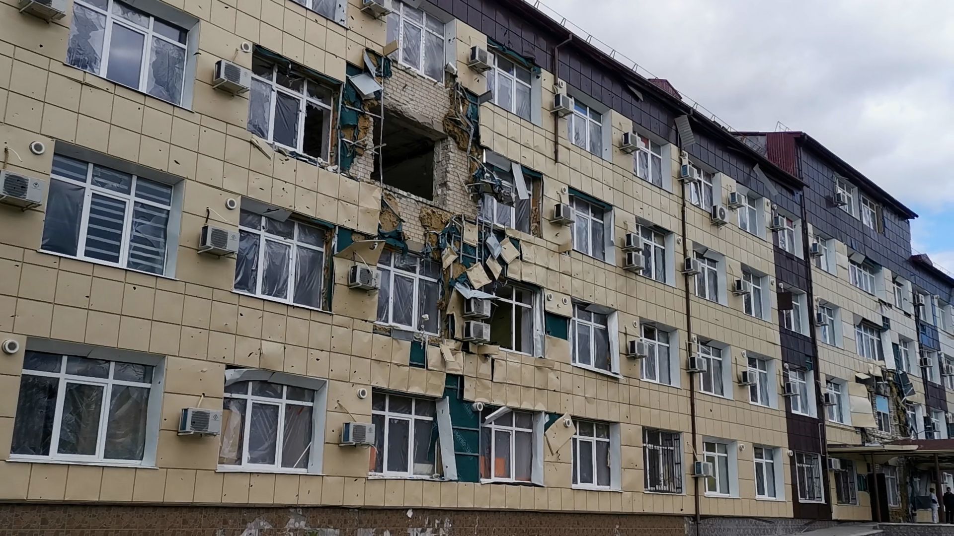 В сеть попало видео, на котором видно разбитое здание рубежанской больницы. Разрушенное здание и зияющее дыры вместо окон - все что осталось от лучшего инфекционного отделения области.