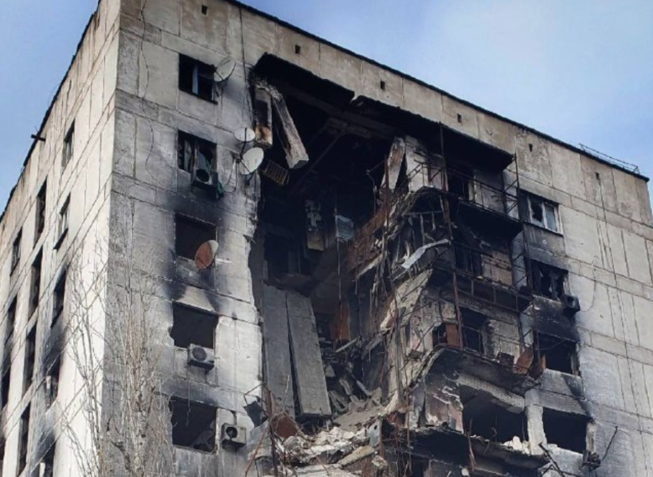 Фото совсем свежие. Они датированы мартом 2023 года. На кадрах - разрушенные многоэтажные дома Северодонецка, разбитая аптека. На одной из дверей квартир написано: "Живут люди". В мирное время о такой надписи на двери даже нельзя было помыслить, а теперь она как будто предупреждает, что в городе происходит что-то страшное.
