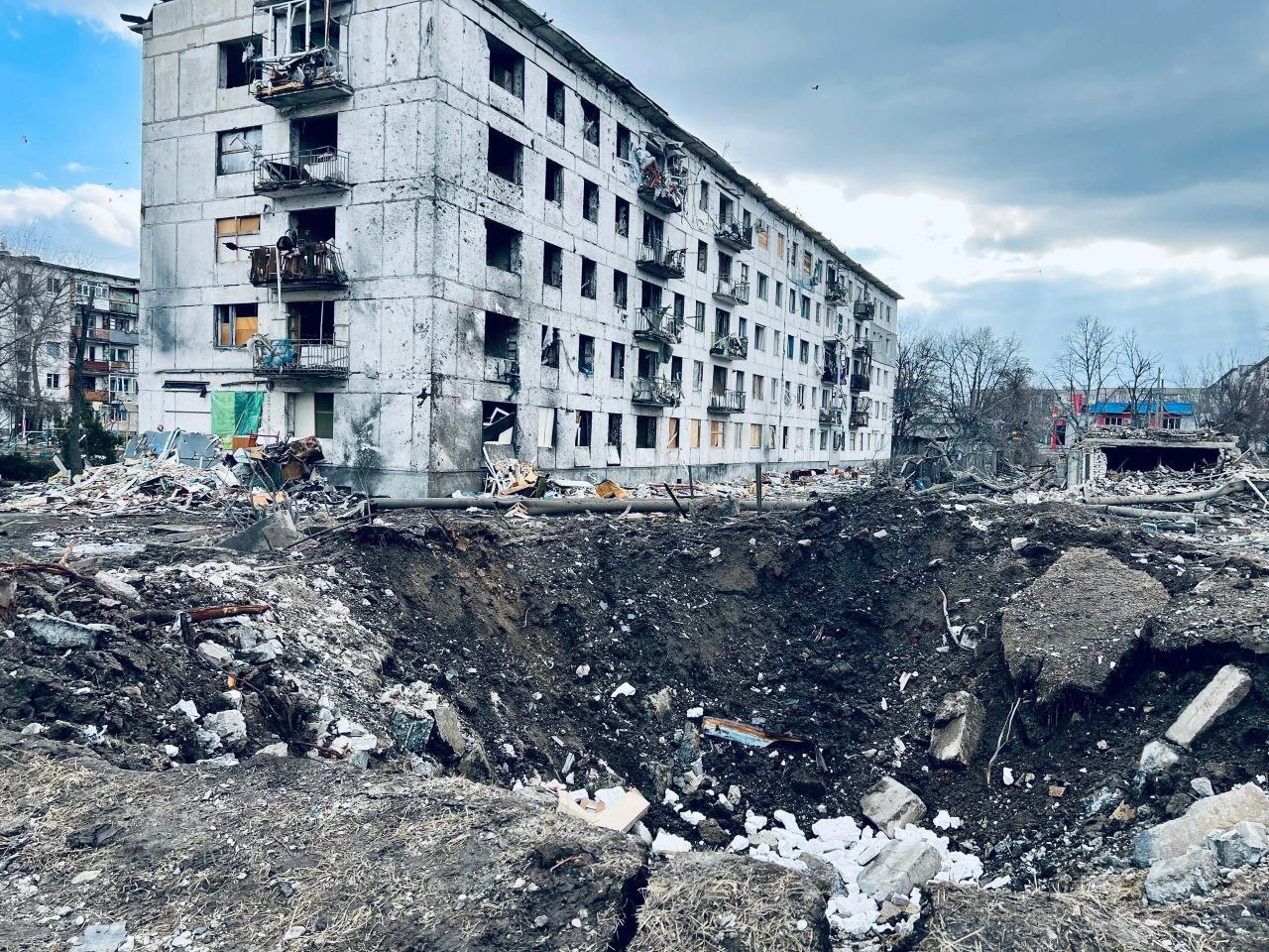 На кадрах из Кременной, разбитые дома зияют пустотой выбитых окон. Хотя так называемые "власти" меняют их на пластиковые уже несколько месяцев подряд. Территория возле многоквартирных домов засыпана обломками и сломанными деревьями. Бедные, когда-то "домашние" любимцы бедствуют у подъезда.