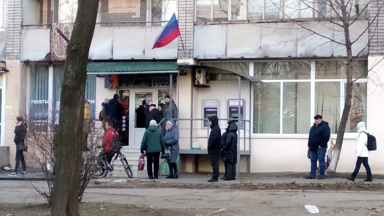 На временно оккупированной территории Луганской области образовался дефицит наличных денег. Огромные очереди у банкоматов стали привычным делом.