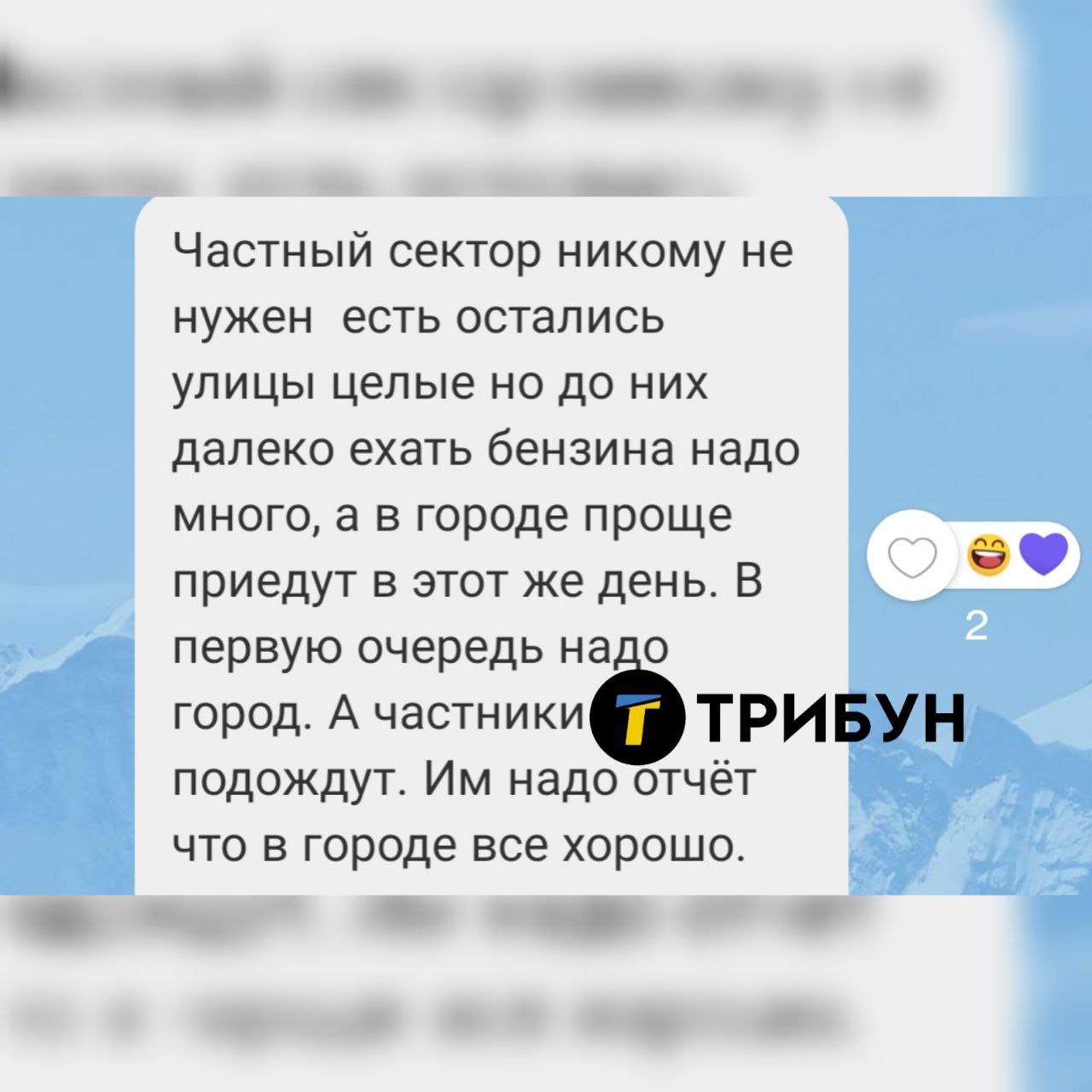 Пользователи сети возмущаются, что частный сектор Рубежного совсем не интересует оккупантов. Даже если на улицах и остались целые дома, работников туда не "заманить". Все внимание "властей" акцентировано на центре города, так как в приоритете у них отчет о том, что там все хорошо.