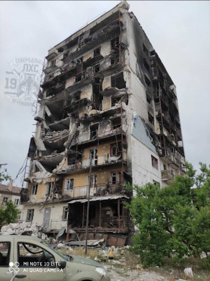 Во временно оккупированном Северодонецке Луганской области многоэтажные дома, поврежденные обстрелами, обваливаются. Жилищным фондом никто не занимается, "ремонтные работы" проводились только в тех домах, которые уцелели.
