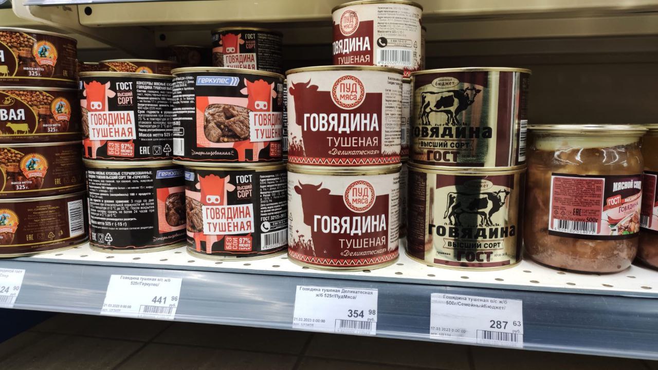 "Появление нового товара в "Матрешке", по крайней мере в Северодонецке, можно смело предугадывать по новостям о гумконвое. Вот, тушеночку завезли. Хоть потрудились расставить вперемешку с обычной", - пишут авторы ТГ-канала.
