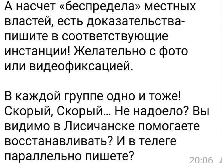 Говоря о "беспределе местных властей" есть и те, которые "встали на защиту" оккупантов. Тем кто не доволен работой Скорого, предлагают фиксировать доказательства и обращаться в соответствующие "инстанции".