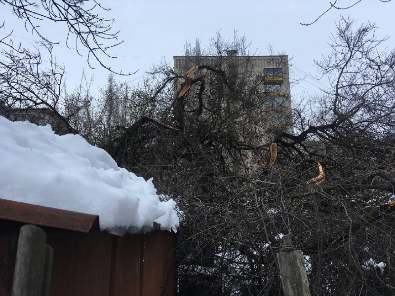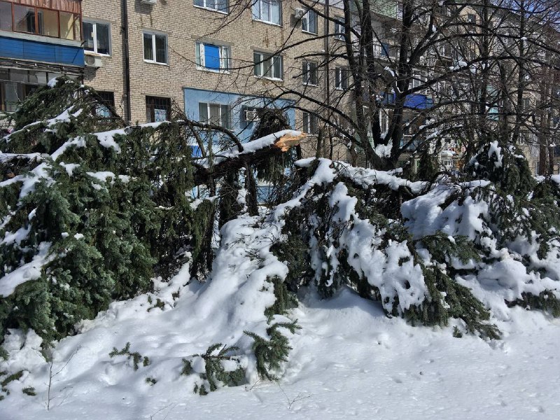 "Налипание мокрого снега на провода и электроопоры привело к многочисленным авариям и отключению электроснабжения в городе. Даже многолетние деревья не выдержали натиск стихии и сломались под тяжестью мокрого снега: некоторые частично, а некоторые были повалены вместе с корнями", - сообщают оккупационные ресурсы.