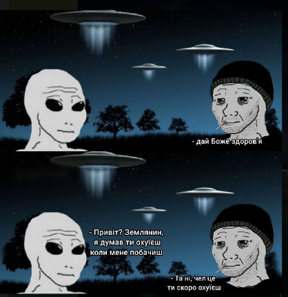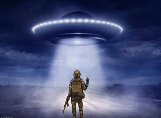 Чаще всего в публикуемых украинцами мемах фигурирует инопланетный космический аппарат. Правда, не всегда авторы шуток уверены, что инопланетяне на стороне украинских вооруженных сил. На всякий случай враждебный НЛО "сбивают" или отправляют вслед за российским военным кораблем.