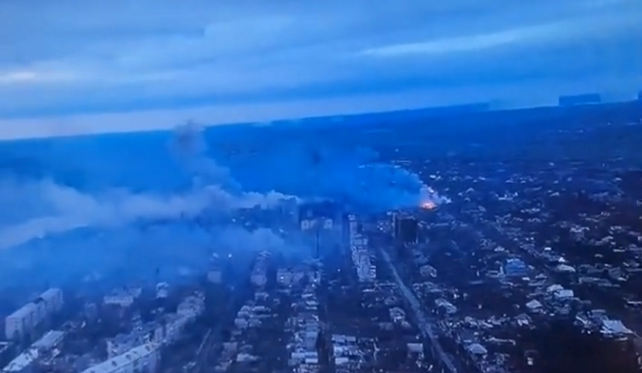 "Хочется показать, что сейчас с Бахмутом происходит. Просто жесть. Вот вам Бахмут", - говорится на видео.