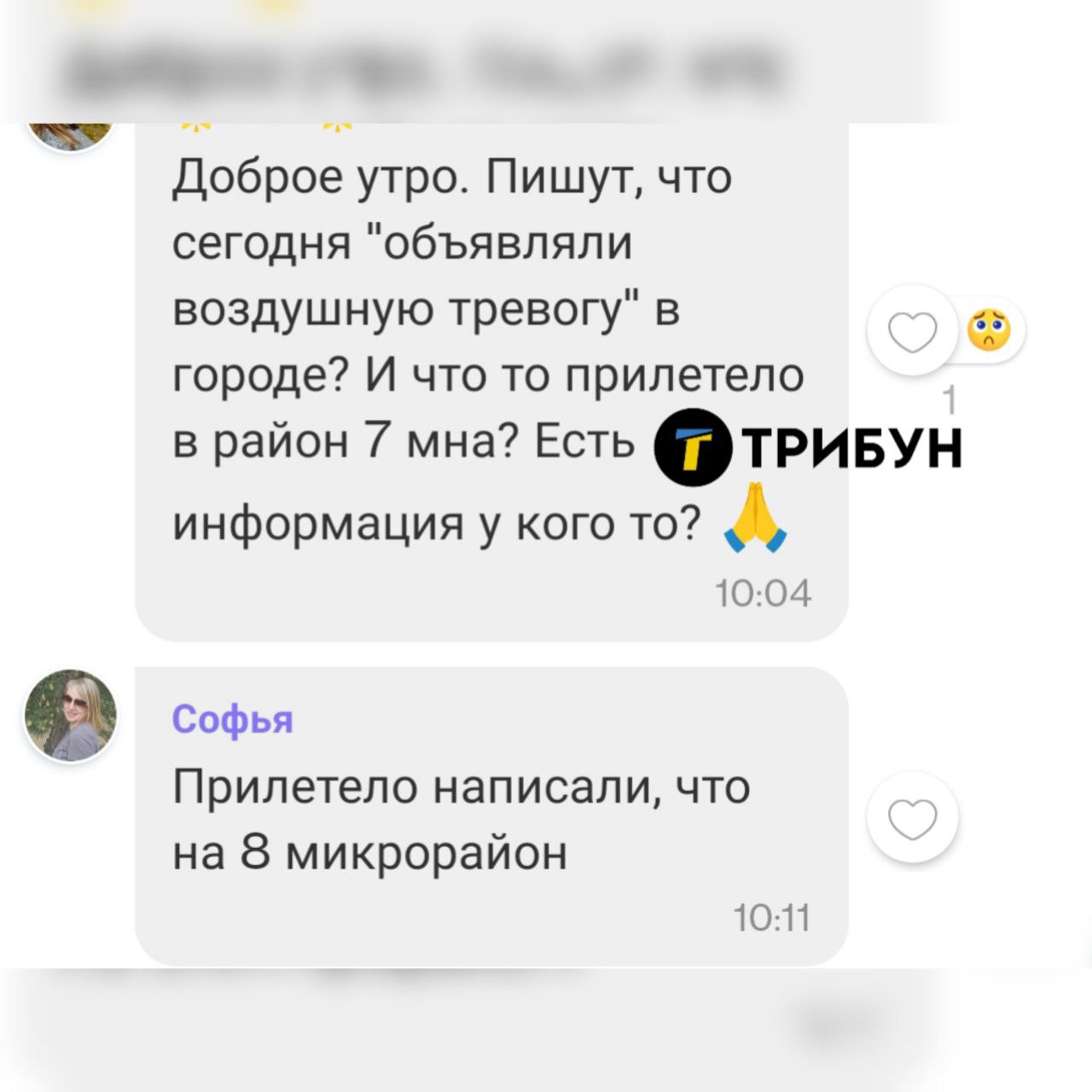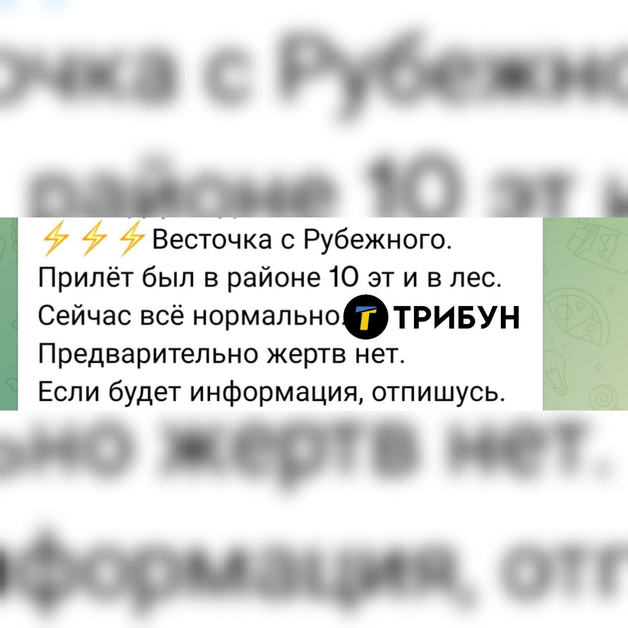"В Рубежном сегодня было очень громко. Объявили воздушную тревогу. Хортов всех сотрудников исполкома выводил в подвал. Над 7 микрорайоном что-то сбили", — пишут в чате.