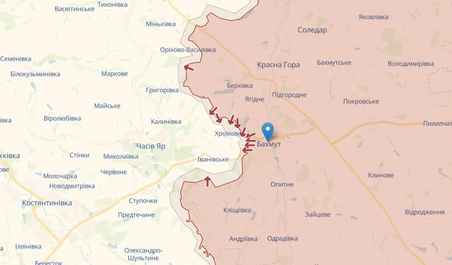 Министерство обороны России заявило, что "вагнеровцы" захватили два квартала в северном и западном Бахмуте. Российский военный блогер утверждал, что силы группы "Вагнера" добились незначительного прогресса в северном Бахмуте и продолжали атаковать украинские позиции в западном и южном Бахмуте.