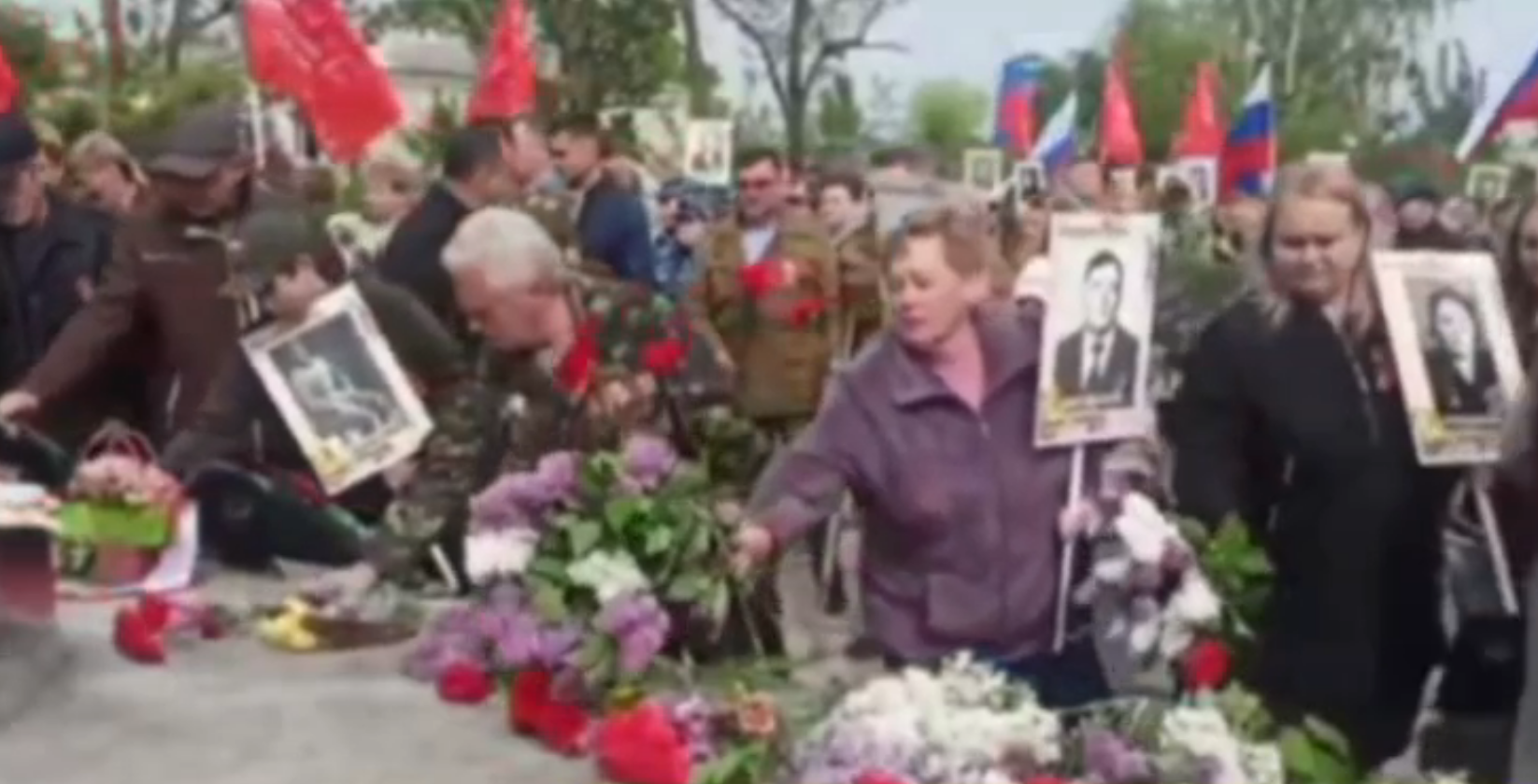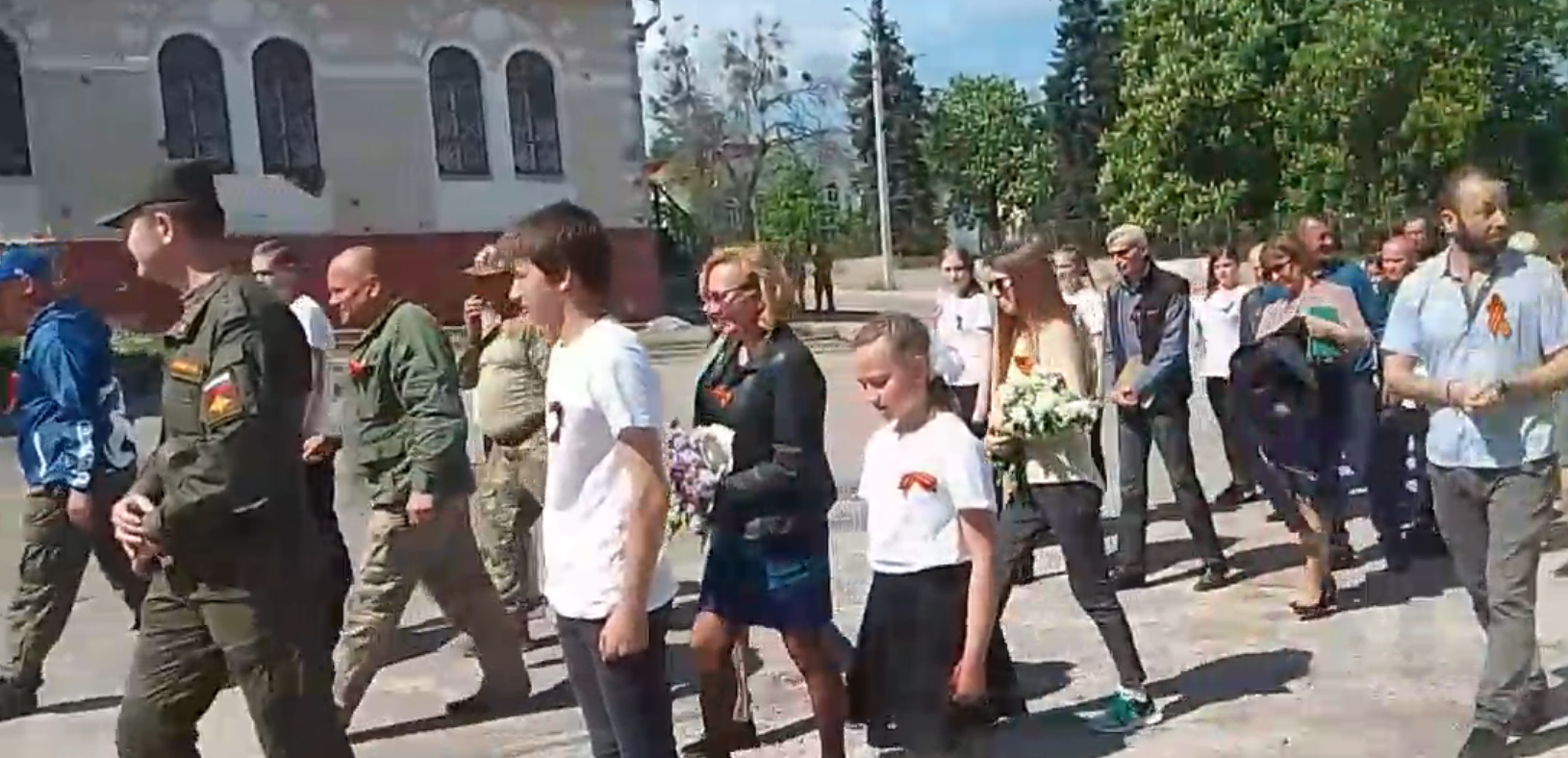 На кадрах, которые опубликовали пропагандистские ресурсы видно, что данное мероприятие проходило в Северодонецке на Мемориале Славы, а в Лисичанске на братской могиле "Вечный огонь", передает Час Пик.