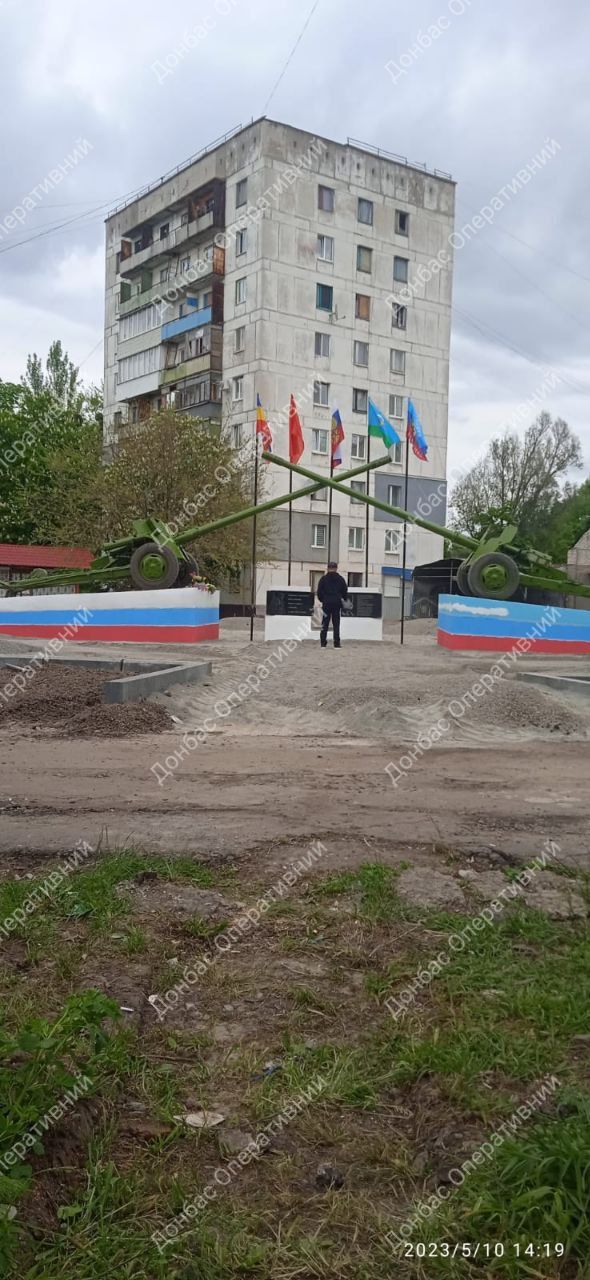 Кадр датирован сегодняшним числом - 10 мая. Как можно заметить, в городе появился новый "памятник" в виде двух орудий между которыми установлены флаги РФ, коммунистический и другие. Примечательно, что незаконная "администрация", которая любит хвастаться "достижениями" не отметила такой "важный" для людей объект.