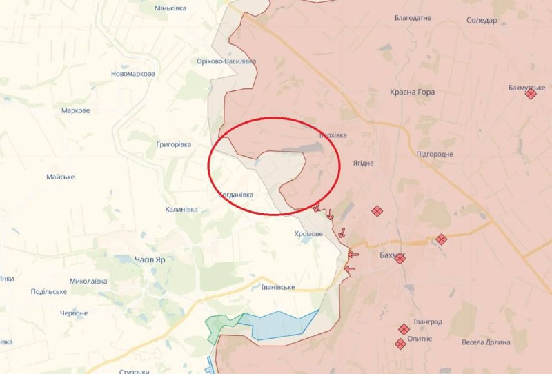 "Эти кадры визуально подтверждают заявления ряда российских блогеров о том, что украинские войска достигли успехов к северо-западу от Бахмута на участке между Богдановкой и Берховкой", - говорится в отчете.