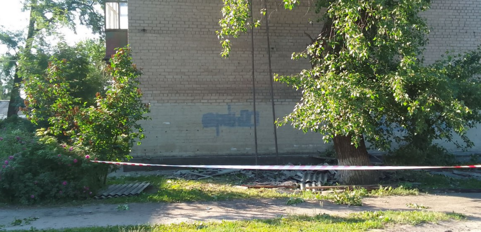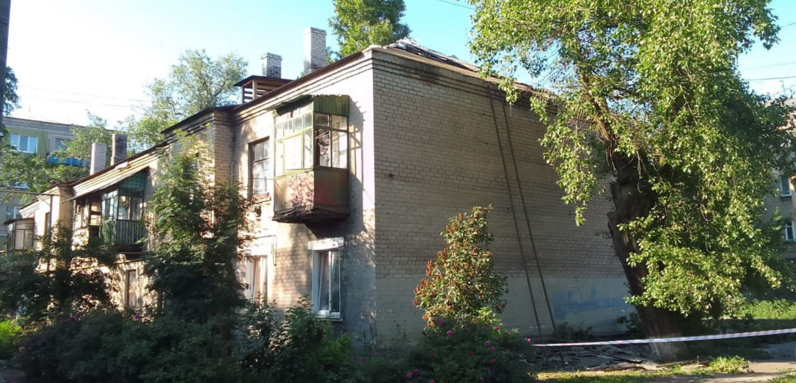 Во временно оккупированном Новодружеске вблизи Лисичанска Луганской области местная "власть" "отремонтировала" крышу в одном двухэтажном доме.