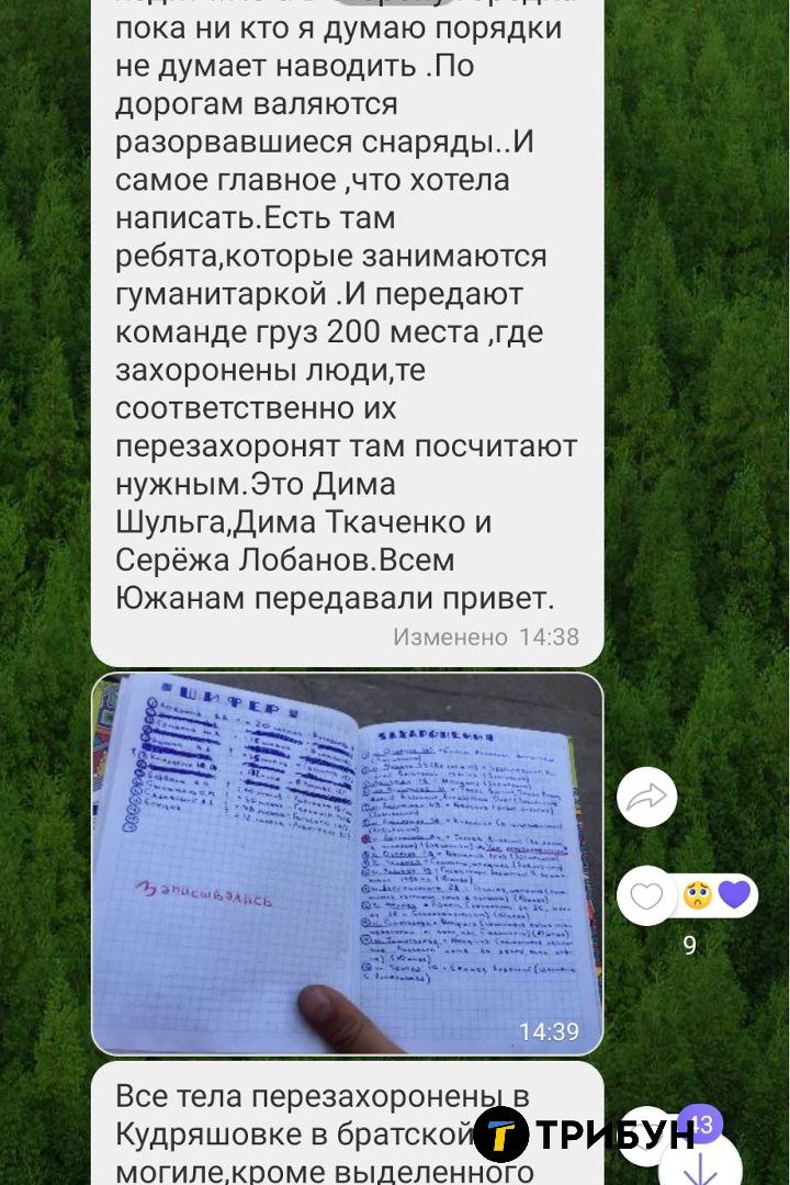 "Они без разрешения родных или близких выкопали тело моей мамы и похоронили в братской могиле. Теперь я не смогу когда-то найти ее, так захотелось оккупантам, хотя в нашем районе есть свое кладбище, и еще два внутри города", — жалуется женщина.