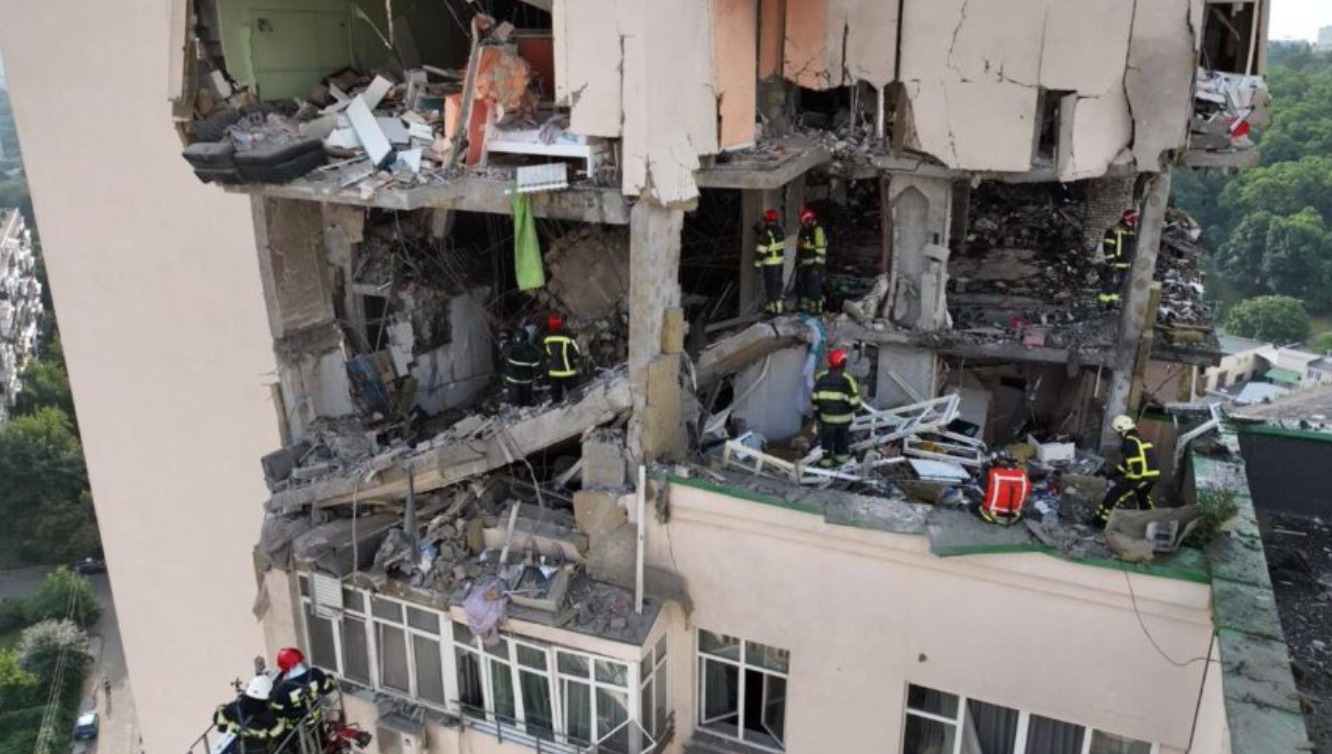 Российские оккупационные войска в ночь на 24 июня совершили очередную ракетную атаку на Киев. В Соломенском районе обломки сбитой ракеты попали в 25-этажный жилой дом. Есть серьезные разрушения и жертвы.