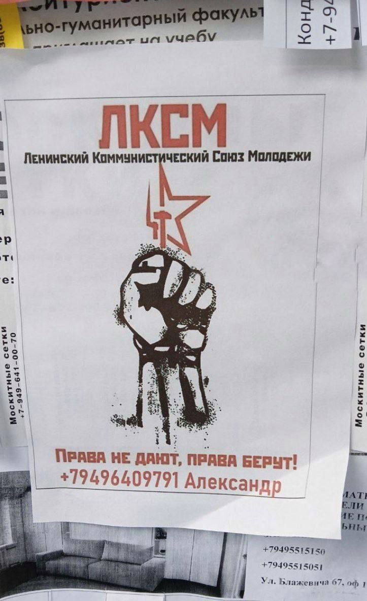 Во временно оккупированном Мариуполе Донецкой области оккупанты мечтают восстановить коммунизм, распространяя идеологическую пропаганду. На таких себе "досках объявлений" появились листовки с призывом вступать в "Ленинский коммунистический союз молодежи РФ".