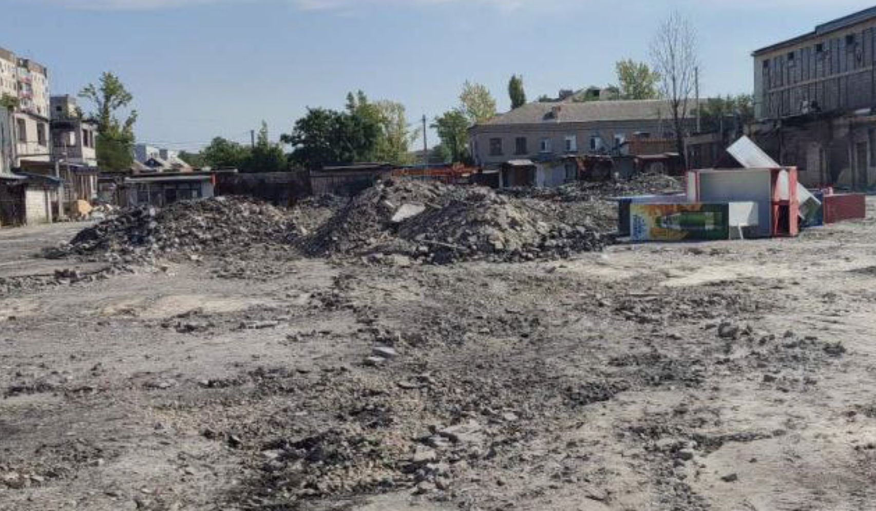 На данный момент территория рынка пуста. Очевидно, работала техника, которая снесла все, что оставалось. Оккупанты не делали никаких заявлений о том, что собираются делать с территорией рынка.