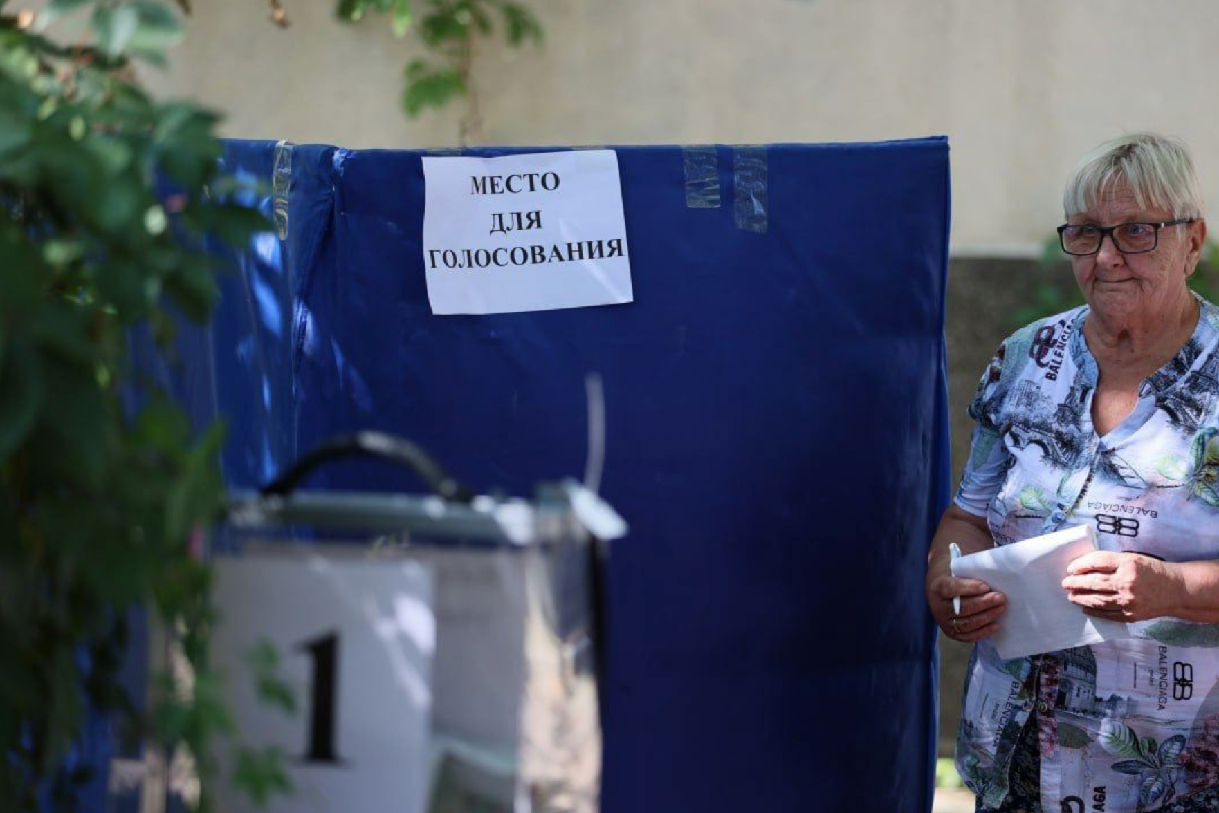 Telegram-канал обнародовал фото, которые, вероятно, сделали и распространили сами оккупанты, с процессом "голосования" в Рубежном. Как можно заметить, "избирательный участок", если его можно так назвать, расположился посреди улицы. Единственное ограждение, которое "гарантирует" анонимность, - кусок тряпки, к которой скотчем приклеен номер "участка".