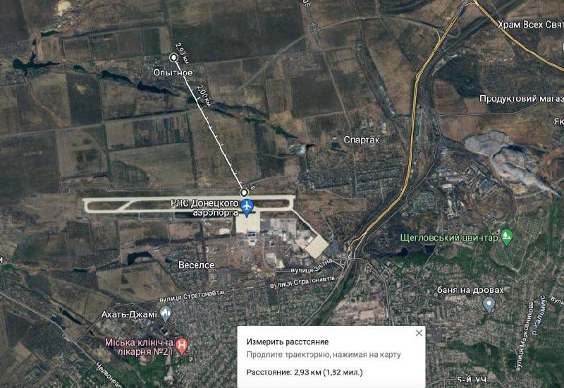 Как пишут пользователи сети, "ВСУ стоят практически в 3-7 км от Донецка, а до аэропорта примерно 3,5 км".